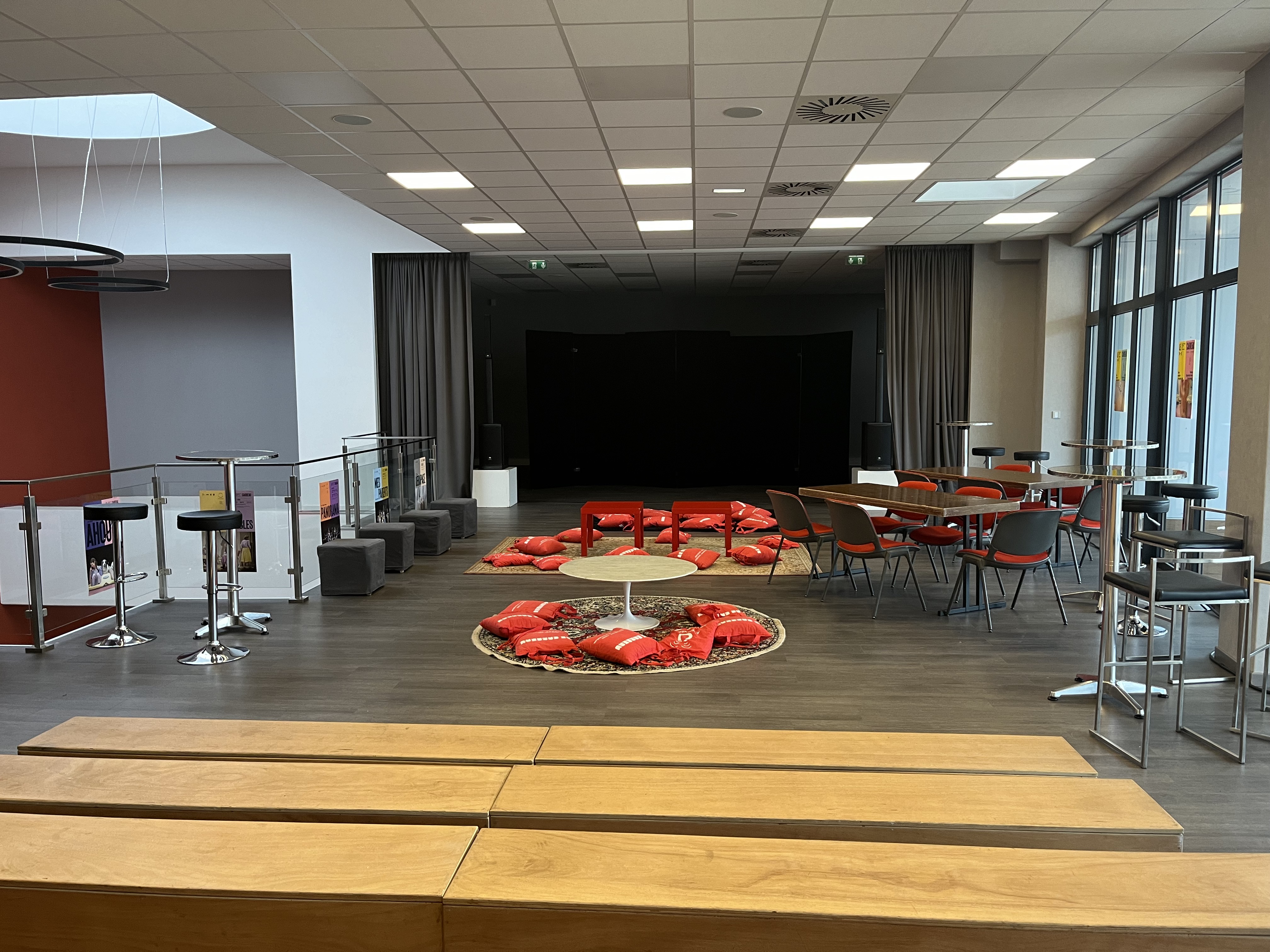 Stage about 105m2, 150 seats.