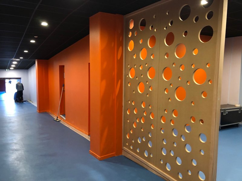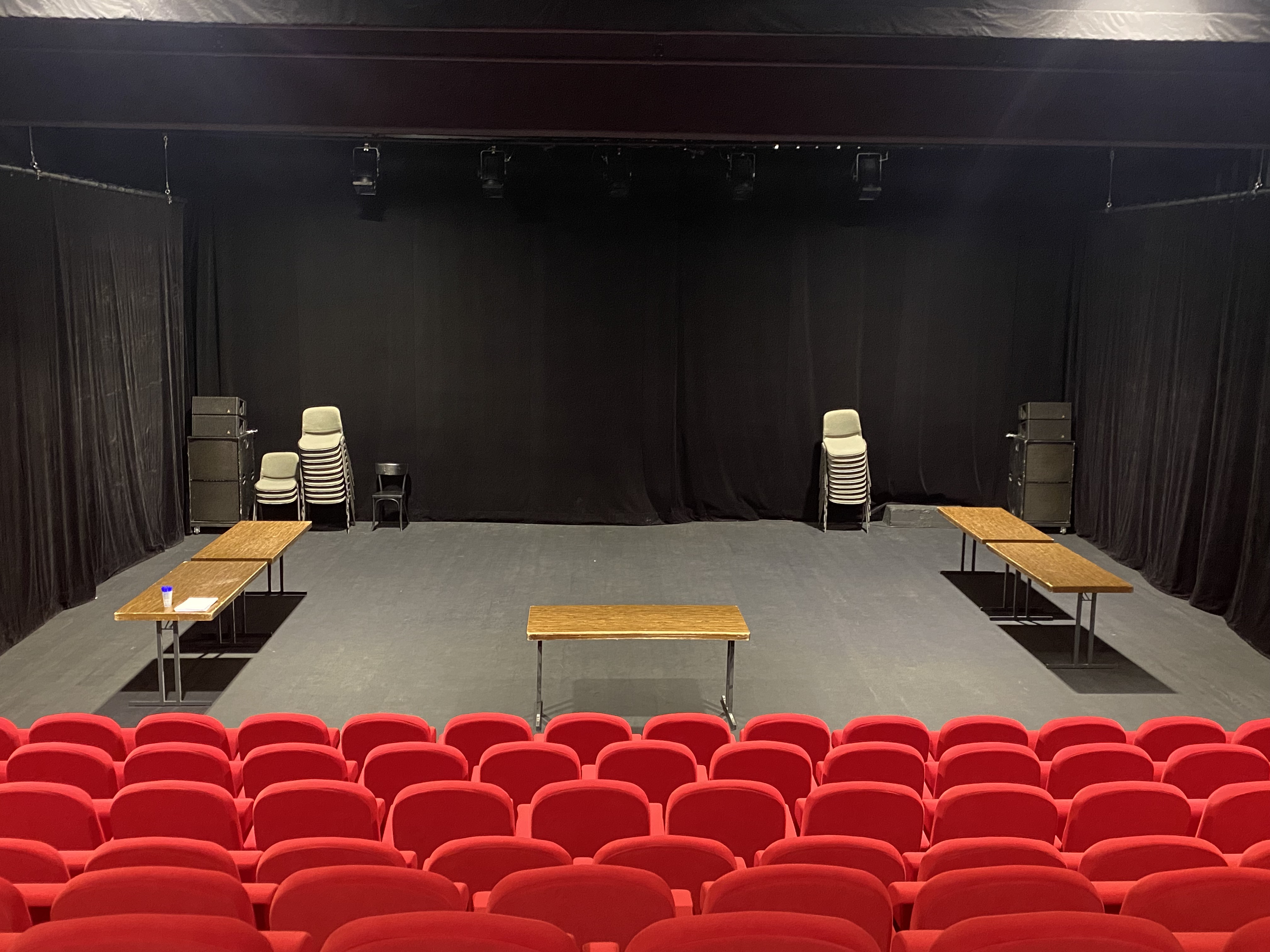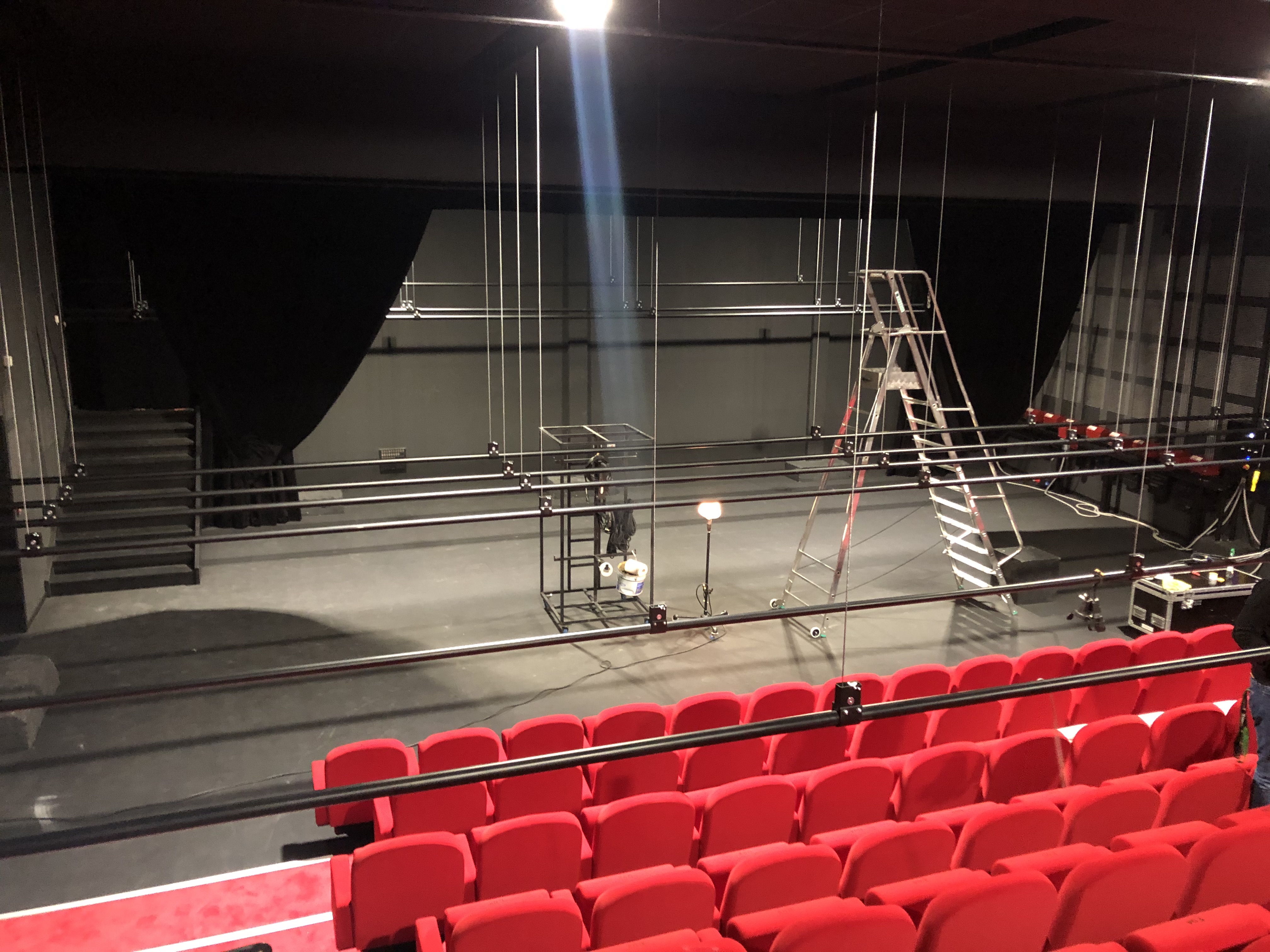 WATCH OUT: the corridor connecting the parking lot to the stage is narrowing in height at one point. Big set elements can be problematic.